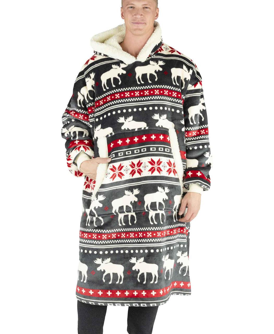 Relax around the house warm and comfy in our Cabin Fair Isle Blanket Hoodie. Our Cabin fair isle blanket hoodie is a cute over size blanket hoodie that is one size fits all. Making it the perfect gift for anyone! Our Blanket Hoodies are made with 100% super soft coral fleece, making them perfect for snuggling on the couch on a cold day. They also feature big kangaroo pockets perfect for those late night snacks!
