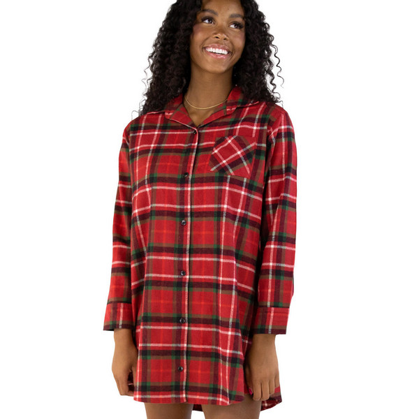 Get comfy and cozy this Christmas season with our Christmas Plaid womens flannel nightshirt. This Flannel Nightshirt features a cute red and green plaid perfect for Christmas. Our Women's Flannel Nightshirts are a feminine twist on the traditionally rugged flannel shirt that feels soft. Snuggle in to bed with this comfortable button down gown! All orders over $75 include free shipping!