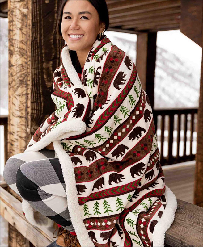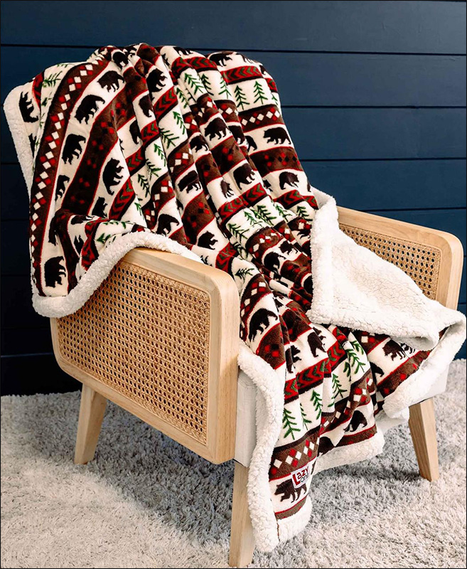 Bear Fair Isle Sherpa Throw Blanket