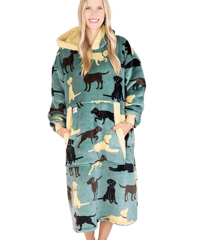 These Lazy one oversized blanket hoodies are meant to last. With a 100% super soft coral fleece inner fabric, this cozy sweatshirt will be your favorite piece in your closet. It also comes preshrunk and features a permanent, no-fade print. Lounge and relax all winter long without getting cold. Our hooded blanket with pockets keeps you warm and ready to snuggle at any moment! Keep toasty night and day with these comfy pajamas. Our extra-long hoodies have a cute, classic design that can be worn any time of the year without going out of style! 100% super soft coral fleece. Machine wash. Imported.