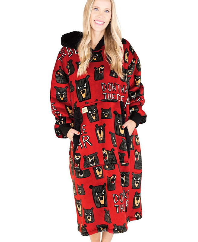 These Lazy one oversized blanket hoodies are meant to last. With a 100% super soft coral fleece inner fabric, this cozy sweatshirt will be your favorite piece in your closet. It also comes preshrunk and features a permanent, no-fade print. Lounge and relax all winter long without getting cold. Our hooded blanket with pockets keeps you warm and ready to snuggle at any moment! Keep toasty night and day with these comfy pajamas. Our extra-long hoodies have a cute, classic design that can be worn any time of the year without going out of style! 100% super soft coral fleece. Machine wash. Imported.