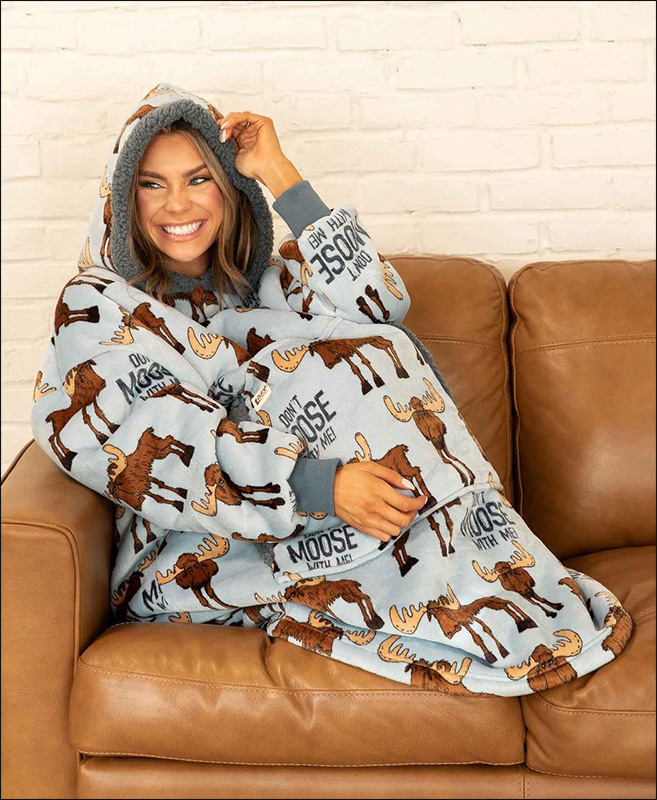 These Lazy one oversized blanket hoodies are meant to last. With a 100% super soft coral fleece inner fabric, this cozy sweatshirt will be your favorite piece in your closet. It also comes preshrunk and features a permanent, no-fade print. Lounge and relax all winter long without getting cold. Our hooded blanket with pockets keeps you warm and ready to snuggle at any moment! Keep toasty night and day with these comfy pajamas. Our extra-long hoodies have a cute, classic design that can be worn any time of the year without going out of style! 100% super soft coral fleece. Machine wash. Imported.
