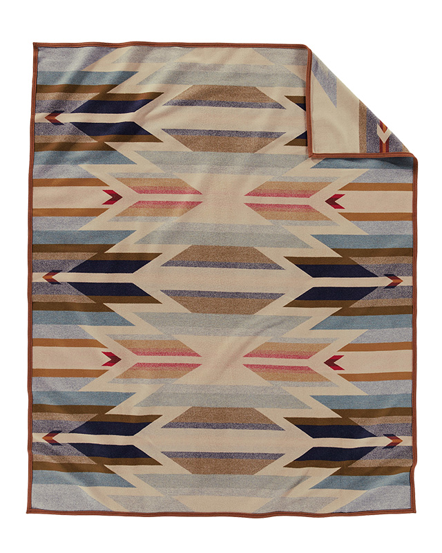 This USA-made blanket reflects the warm, harmonious colors of ancient corn varieties, in a balanced pattern of rows that echo long-ago gardens. Arrows point in two directions: the past and the future. Reverses for two dramatically different looks. Pair with matching sham.
