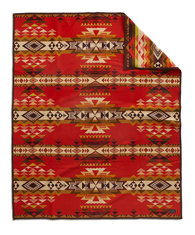 The Sierra Nevada range is the longest continuous and unified mountain chain in the United States. In this blanket design, interlocking groups of triangles arranged in unbroken bands celebrate the Sierra Nevada and its tallest mountain, Highland Peak. Made start to finish in the Pacific Northwest, this wool blanket is expertly woven on three-story jacquard looms, and reverses for two different looks.
