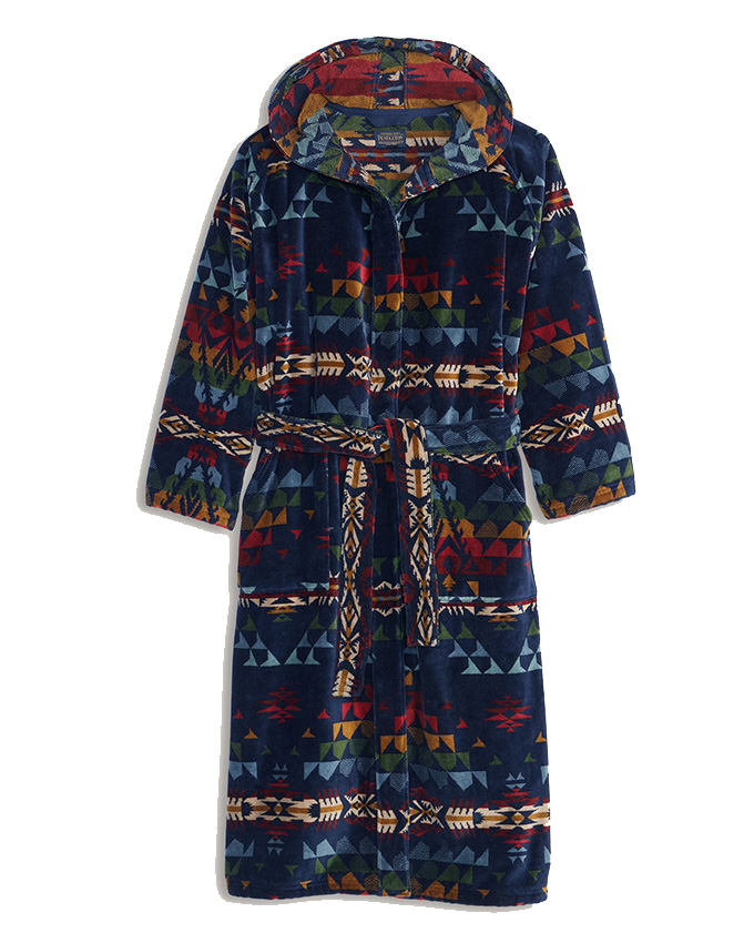 A plush, pure cotton wrap robe that's velvety soft outside, with absorbent loops inside. Features our Autumn Birch pattern. Generous hood, two deep pockets and a self-fabric waist tie. Unisex fit. OEKO-TEK and GOTS certified.