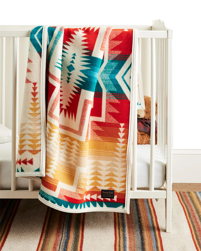 One of our most beloved patterns, now in a child-sized blanket woven in our Pendleton, Oregon, mill using our softest pure virgin wool. A treasured gift that's customizable with embroidery for a special touch. Reverses for two distinct looks.