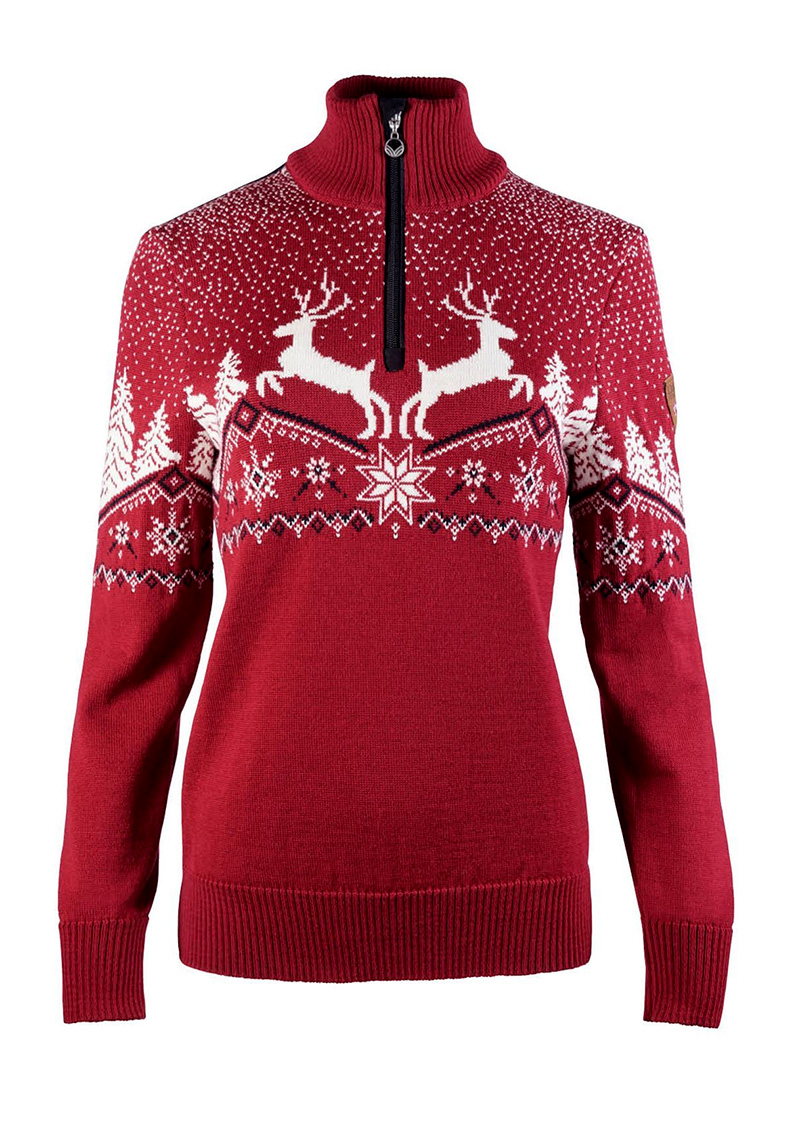 A classic, yet sophisticated Christmas sweater, inspired by the Norwegian Christmas: Reindeer, Christmas trees, falling snow – it’s all there. And in the center, like a Christmas star, the traditional Norwegian eight-petal rose. Made with 100% soft and light merino wool, it’s classy for the indoors, yet toasty for the outdoors. With matching Christmas sweaters for men and kids, there’s only one thing to do: Outfit the family for this year’s Christmas photo!