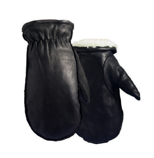 Full Grain Deerskin Sherpa Lined Mitts - Black