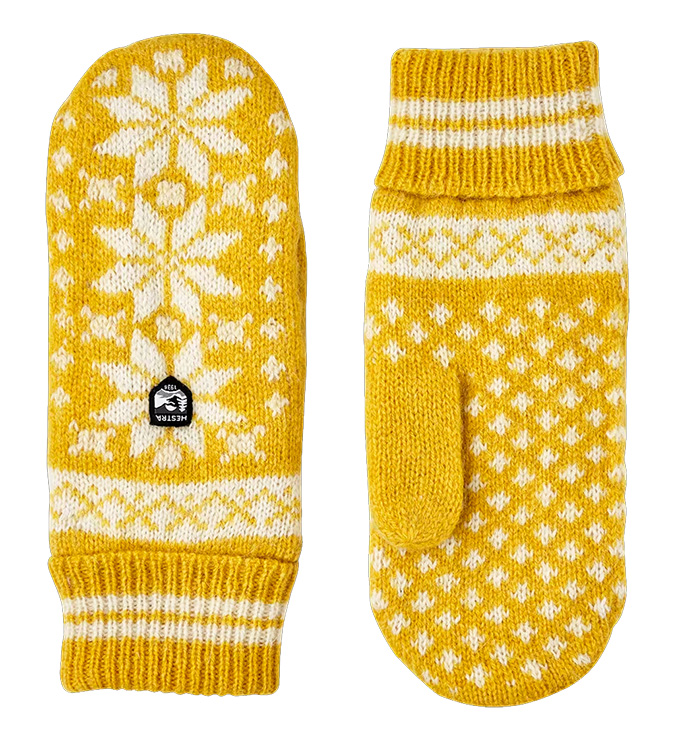 A classic knitted mitten with a rib knitted cuff. Knitted in a traditional Nordic Fair Isle design in soft, fine wool yarn blended with a little polyamide for extra strength. The cuff is ribbed with a small Hestra logo on the backhand. A timeless, beautiful design that keeps hands warm on milder days of autumn and winter.