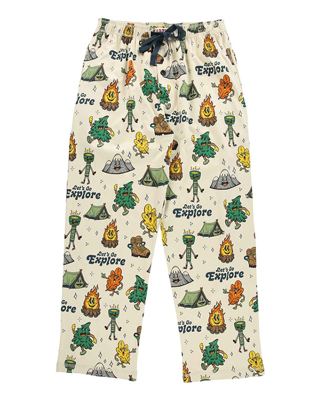 Nothing beats the classic comfort our men's pajama pants bring! You can go even more vintage with our Vintage Camping men's pajama pants. These pajama pants feature and all over camping cartoon character design in a vintage styling. Made for both men and women, these roomy lab jammies are made from 100% cotton. Pants have a fly, a drawstring and pockets.