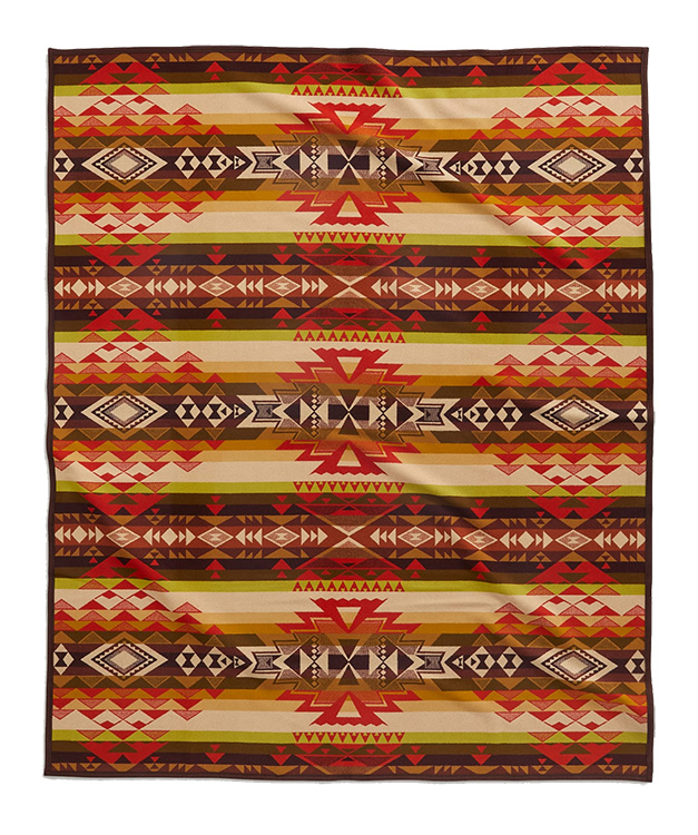 The Sierra Nevada range is the longest continuous and unified mountain chain in the United States. In this blanket design, interlocking groups of triangles arranged in unbroken bands celebrate the Sierra Nevada and its tallest mountain, Highland Peak. Made start to finish in the Pacific Northwest, this wool blanket is expertly woven on three-story jacquard looms, and reverses for two different looks.