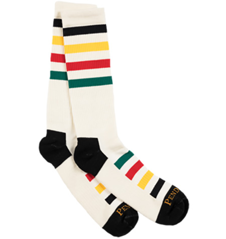 Our best-selling National Park stripes are now in Merino wool blends. Their performance features are the perfect companion for all your outdoor adventures. Features include leg and ankle compression, arch support, mesh top and dense cushioning in the footbed. 44% cotton, 29% merino wool, 19% arcylic, 8% spandex